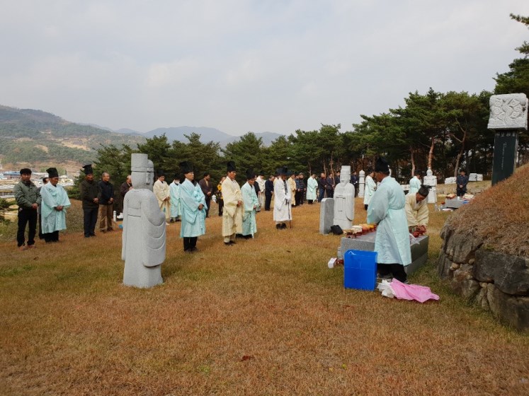 11월10일(토) 11시 선산읍 독동리(新松田) 『安康盧氏世葬之地(안강노씨세장지지)』에서 진환(역락재공파) 종회장 등 역정공파, 역락재공파, 경암공파, 월계공파, 동래공파, 사간공파 종원 약60여명이 2018(戊戌)년 가을 시제(時祭)를 지냈습니다. 원위(原位)인 대광정승공(大匡政丞公) 산소 초헌관은 경암공파 전영남대 총장 석균종이 하였습니다.